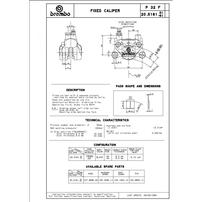 BREMBO CALIPER P32F, W/07BB0110