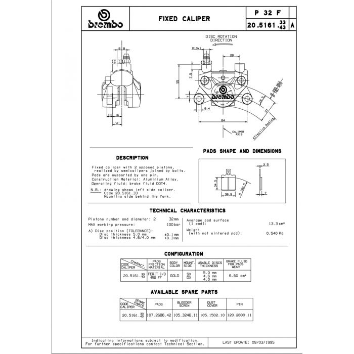 BREMBO CALIPER P32F, W/07BB0111