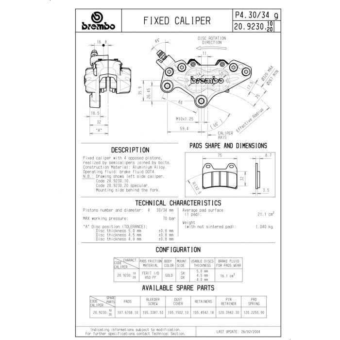 BREMBO CALIPER P4 30/34, RIGHT W/07BB1910